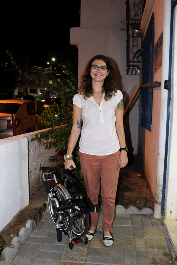 Renata, utiliza bicicleta como meio de transporte urbano em seu cotidiano desde 2012, em busca de algo mais saudável e para fugir do estresse do trânsito. ” Vá em frente, procura alguém que já esteja acostumado a andar no trânsito. Vale a pena, é uma opção saudável para o meio ambiente e para o ciclista” indicou Renata.