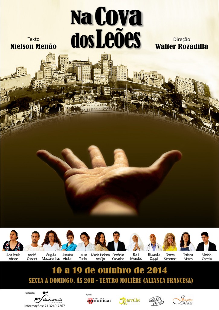 O espetáculo “Na Cova dos Leões”, adaptação do texto de Nielson Menão, apresenta uma nova montagem do grupo de teatro ‘Vánacontramão’ nesta sexta-feira, 10, no Teatro Molière – Aliança Francesa.