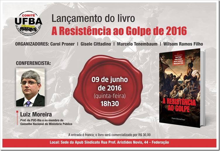 Comitê UFBA promove lançamento do livro “A Resistência ao Golpe de 2016″