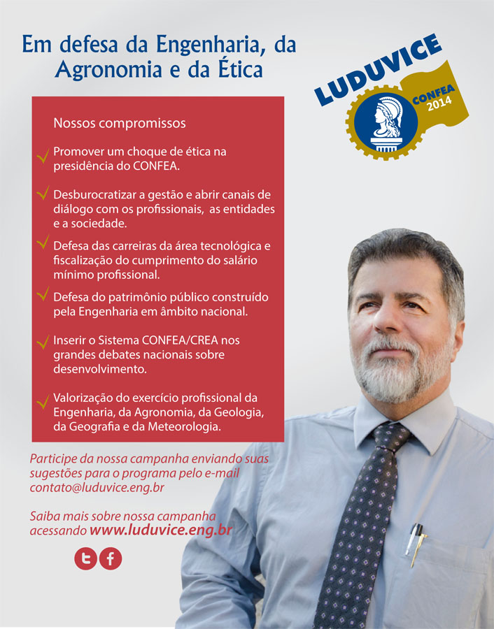 O engenheiro Henrique Luduvice, que já foi presidente do CONFEA no período de 1994/1999, teve sua candidatura lançada por entidades de classe de engenheiros, agrônomos e técnicos, insatisfeitas com a atual gestão do CONFEA. Segundo Luduvice “o primeiro desafio será o de dar um banho de ética na presidência do CONFEA”. O Conselho atravessa atualmente uma crise, após vir a público a decisão da Justiça Federal de penhorar os bens do atual presidente e candidato à reeleição, em função de processo por conduta irregular praticada na presidência do CREA-SP, no período 2006-2011.
