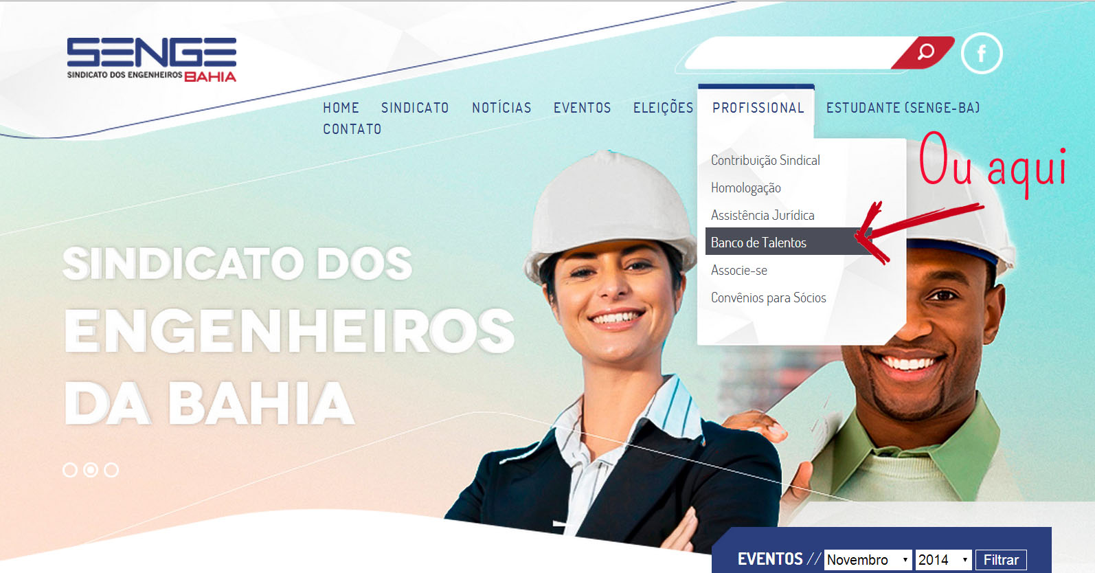 Para acessar o serviço, clique no banner específico no site ou na aba “Profissional” e em seguida “Banco de Talentos”.