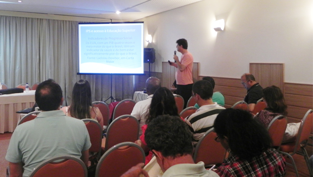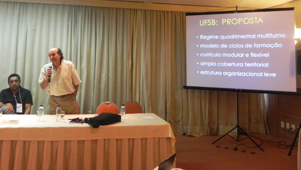 Trazendo reflexões sobre o Ensino e Formação Profissional estavam os professores Penildon Silva Filho e Namoar Almeida, reitor da Universidade Federal do Sul da Bahia (UFSB). O reitor contou sua experiência na UFSB e explicou a nova estrutura curricular da Universidade, baseada no Barcharelado Interdisciplinar (BI), que oferece ao aluno a oportunidade de iniciar sua educação superior sem a obrigação de escolher o curso antes mesmo do processo seletivo. A UFSB também possui unidades descentralizadas, denominadas colégios universitários, nos quais os alunos podem começar o curso com aulas à distância, sem precisar se deslocar de seu local de origem. Penildon Silva complementou a palestra de Naomar, afirmando que, apesar do recente investimento nas universidades federais, o modelo de educação brasileiro ainda é elitista e impede a democratização do acesso. “Não adianta investir 10% do PIB em educação com este modelo de universidade. Não vamos ter uma democratização do acesso se mantivermos este modelo que o Brasil herdou do século XIX”, disse. Para ele, a adoção dos BIs deveria ser massiva e as universidades deveriam criar mecanismos de permanência para o aluno de baixa renda para diminuir a evasão.