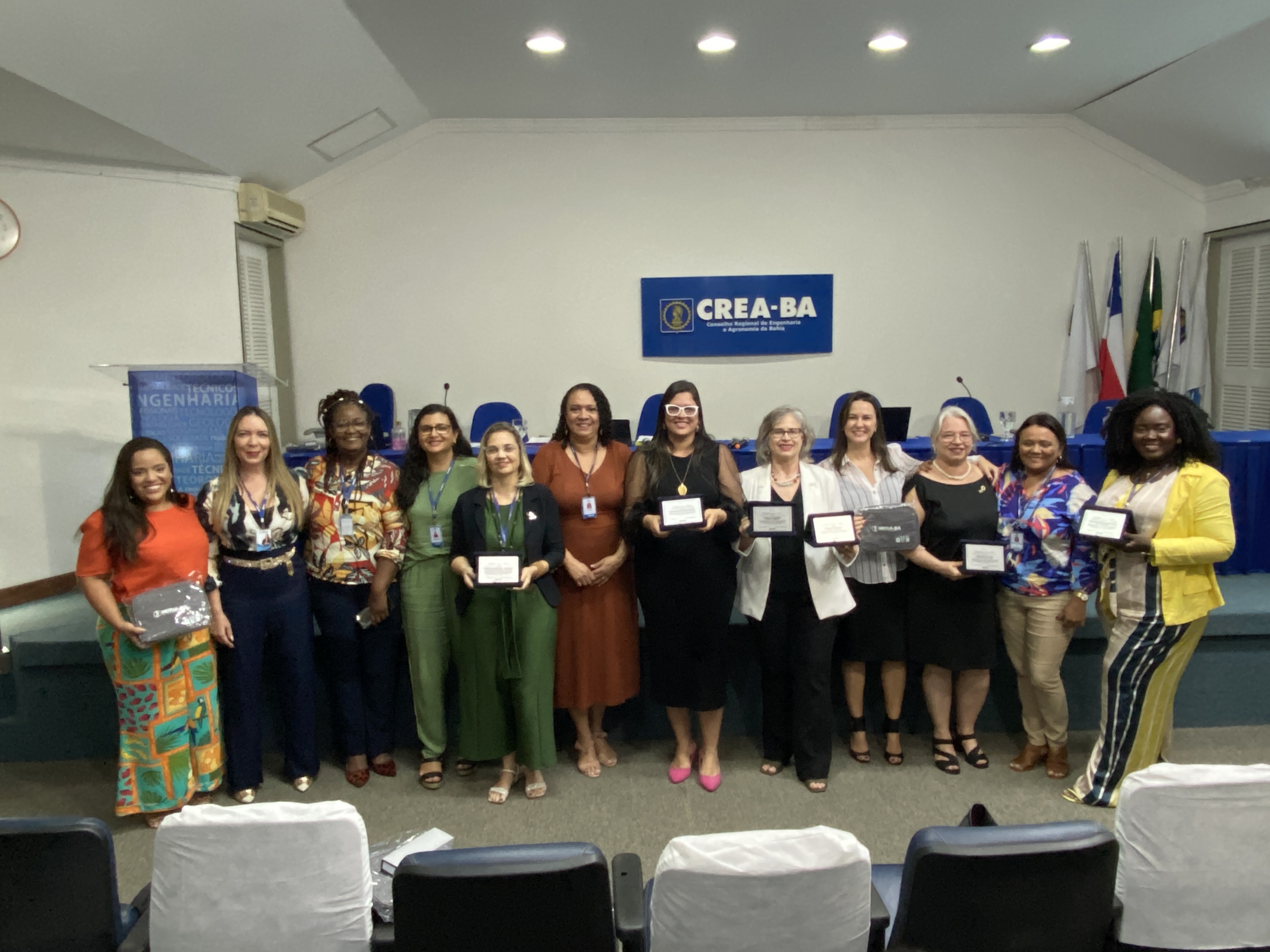 Uma das entidades homenageadas foi o SENGE Bahia, protagonista na adoção de critérios de gênero para composição da sua Diretoria Executiva e nas indicações para o Plenário do CREA-BA.