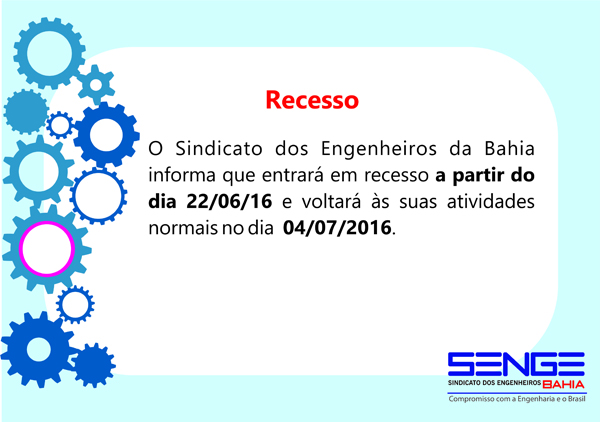 Sindicato dos engenheiros da Bahia entrará de recesso! Senge Bahia 17 de junho de 2016 Geral 0 Comentários O Senge Bahia informa que entrará em recesso junino a partir do dia 22/06/2016. As atividades serão retomadas no dia 04/07/2016. Talvez você goste também Feijoada os Engenheiros acontece no dia 02 de fevereiro 11 de janeiro de 2019 Using the following pointers can help you get pleasure from 9 de setembro de 2020 Buying a practical female intercourse doll doesn’t should be 31 de agosto de 2021 Deixe uma resposta Cancelar resposta