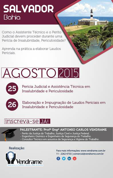 Dia 25/08 – Curso Perícia Judicial e Assistência Técnica em Insalubridade e Periculosidade